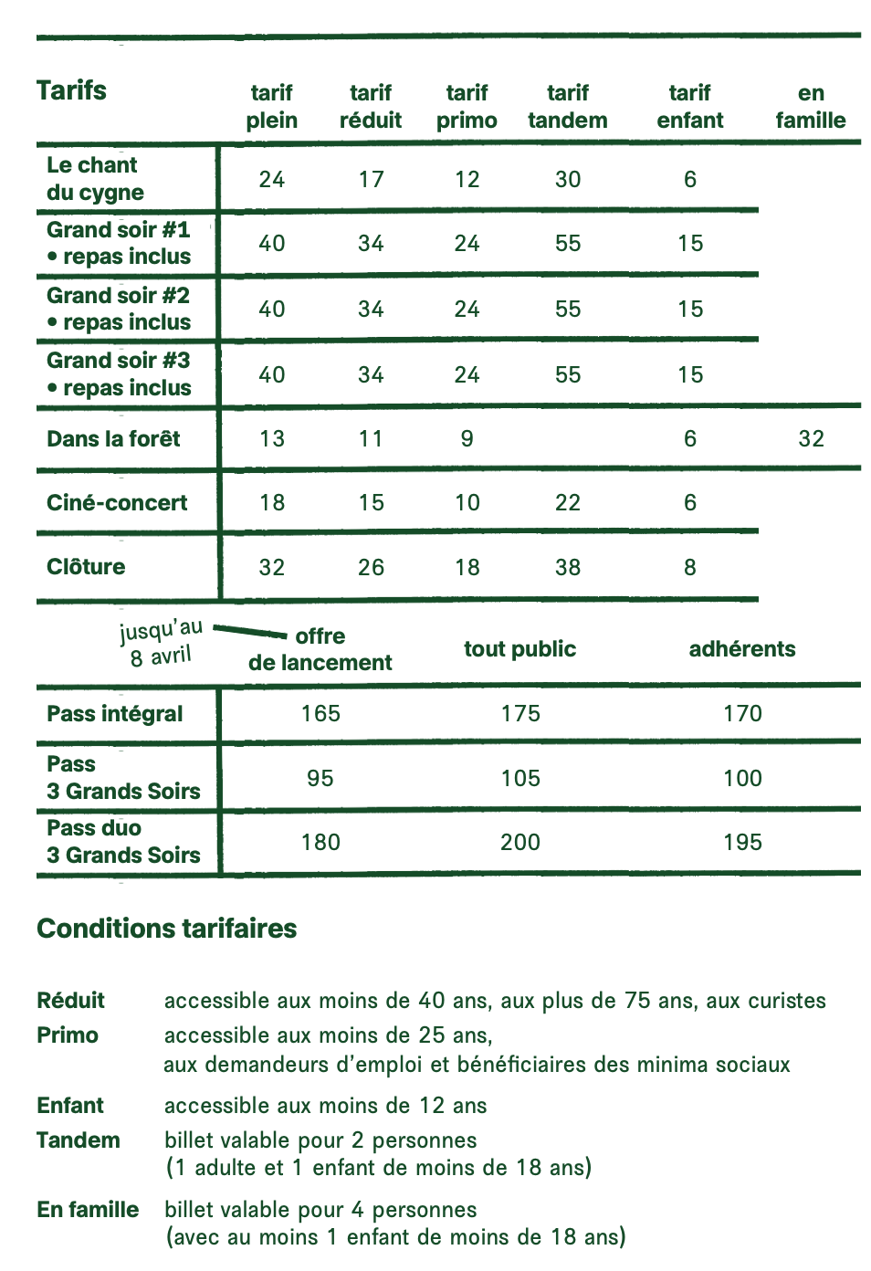 Adhérez avant de réserver vos billets pour bénéficier d’une réduction de 10% sur le prix des places et d’un tarif préférentiel sur les pass.